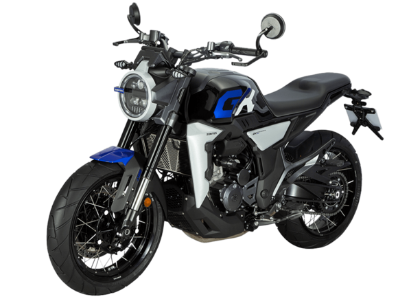 Мотоцикл ZONTES ZT350-GK – современный неоклассик для покорения городских пространств. Хорошо проявляет себя как в тесном межрядье, так и на свободных трассах.Силовая установка представлена одноцилиндровым 4-тактным двигателем ZT184MP с 4 клапанами и 2 верхними распредвалами. Двигатель имеет объём 348 см³ и обеспечивает мощность в 39 л.с. Оснащён инжектором BOSCH и системой жидкостного охлаждения. Механическая коробка передач имеет 6 ступеней и схему 1-N-2-3-4-5-6. Запуск двигателя осуществляется с помощью бесключевого доступа.Ёмкость топливного бака 17 литров.Бескамерные спицованные колёса имеют диаметр 17 дюймов. На мотоцикл установлены датчики давления в шинах, показатели от которых выводятся на приборную панель. Для подвески спереди используется телескопическая вилка, сзади – моноамортизатор. Гидравлические дисковые тормоза произведены испанской компанией J.JUAN, входящей в холдинг BREMBO. Передний тормозной диск скрыт под защитным кожухом.В конструкции мотоцикла используется трубчатая стальная рама. Рычаги тормоза и сцепления, а также лапки КПП можно отрегулировать. Рычаги снабжены защитными скобами. Для освещения используется яркая LED-оптика, а приборная панель представлена цифровым дисплеем. Имеется 2 USB-порта.Габариты мотоцикла 2070х845х1120 мм. Колёсная база 1390 мм. Высота по седлу 795 мм. Вес 169 кг.