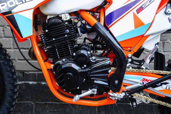 Эконика SPORT-007 – новый внедорожный мотоцикл. Его стоимость значительно ниже брендовых моделей со схожими характеристиками, но качество сборки в целом, как и отдельных деталей, отличное.В стальной раме с баком 6,5 литров установлен четырехтактный одноцилиндровый двигатель Zongshen 172FMM-3A мощностью 21 л.с, с механической коробкой передач и воздушным охлаждением. Мотоциклы оснащаются вакуумными карбюраторами. Для удобства запуска мотора предусмотрен электростартер.Мотоцикл оснащен фарой головного света, что является необходимым условием для езды в сумерках и темноте, и LED указатели поворота.У нас Вы можете купить этот мотоцикл с бесплатной доставкой по РФ и гарантией до года. Также его можно приобрести в рассрочку или в кредит.