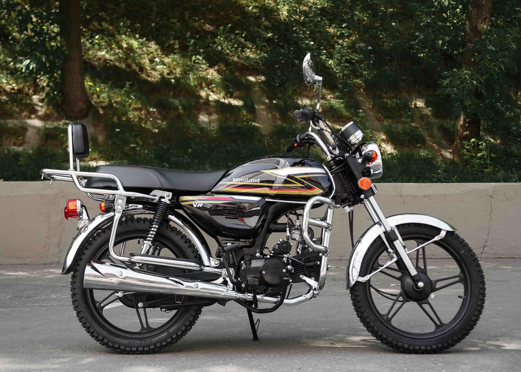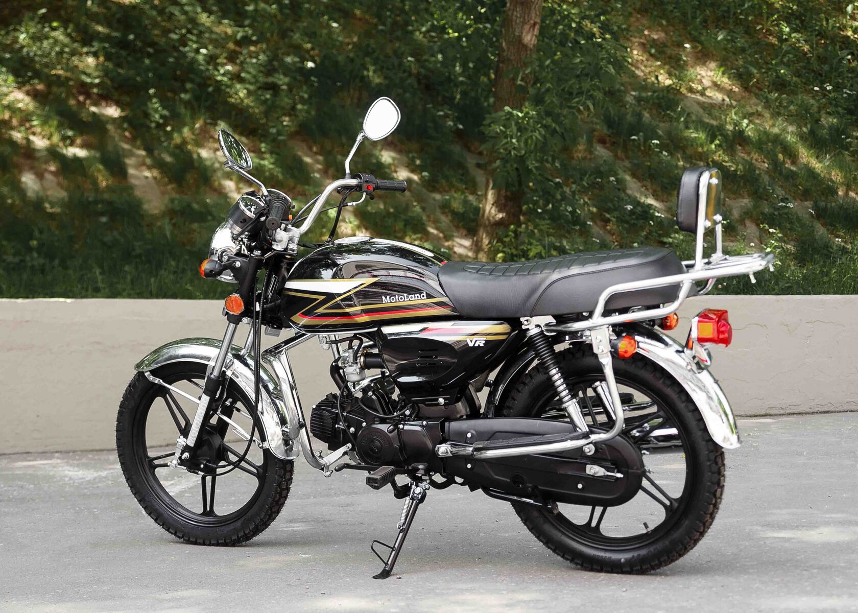 Обновленная версия мопеда альфа от мотолэнда. В мопеде Motoland Alpha VR11 удлиненная база. Это делает посадку более удобной даже для высоких людей, выемки на баке очень удобны для коленей. Для удобства пассажира присутствует спинка.Увеличенный объем бензобака , его длина стала на 10 см длиннее ранних моделей. Мотоцикл поставляется на 17 дюймовых легкосплавных дисках с шинами увеличенного размера . Спереди стоит шина 2,75 (обычно 2,5) сзади шина 3,00 (обычно 2,75). Внешний вид Motoland VR 11 стал более солидным, мопед уже выглядит как взрослый мотоцикл.Мопед с завода поставляется с 50 кубовой поршневой, в подарок мы предоставляем поршневую 110сс. При сборке мотоцикла ее нужно установить. Тк коробка передач и карбюратор PZ19 рассчитаны на работу со 110 поршневой (на 50сс поршневой свечу будет заливать).Все маркировки мопеда- рама и двигатель как у 50сс мопеда. (тк он им и является). После замены поршневой внешне никак не видно его кубатуру. У мотоцикла железные крылья, которые заметно крепче пластиковых, однако могут со временем начать ржаветь. Максимальная скорость до 85 км/час. Хорошее качество сборки.