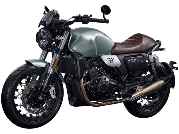 CYCLONE RE3 (SR400) – классик, в котором подчёркнутая простота объединяется с современными технологиями.Двухцилиндровый четырёхтактный двигатель объёмом 401 см3 выдаёт 43 л.с. на 9500 об/мин. Максимальный крутящий момент достигается на 8000 об/мин и составляет 34 Н·м. Инжекторный впрыск топлива с инжектором BOSCH увеличивает топливную экономичность, а также позволяет добиться высокой приёмистости и неприхотливости агрегата. Жидкостная система охлаждения не допустит перегрева двигателя даже при самом агрессивном вождении. На мотоцикл установлена 6-ступенчатая механическая коробка передач.Максимальная скорость мотоцикла составляет 140 км/ч.RE3 оснащён классическими спицованными колёсами диаметром 17 дюймов. Колёса обуты в бескамерные покрышки TIMSUN. С неровностями дороги эффективно справляются регулируемая телескопическая вилка перевёрнутого типа спереди и маятник с двумя амортизаторами сзади. Ход передней подвески составляет 110 мм, задней – 81 мм. Эффективное и безопасное замедление с любых скоростей обеспечивают гидравлические дисковые тормоза с ABS спереди и сзади.Клиренс мотоцикла составляет 145 мм. Объём топливного бака – 19 л. Снаряжённая масса – 186 кг.Из дополнительного оборудования можно выделить USB-порт, подсветку пультов и датчики давления в шинах.Мотоцикл сочетает в себе отличные технические характеристики, комфорт и надёжность, что позволяет вам ощутить настоящую свободу на любой дороге.