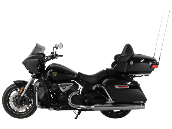 Диски колёсные Спереди и сзади новая модель обрела литые колесные диски диаметром 17 дюймов. Колеса качественно окрашены в черный цвет. Универсальность мотоцикла подчеркивают туристические шины с протектором 60/40 (асфальт/грунт), размерностью: 100/90-17 спереди и 110/90-17 сзади.
