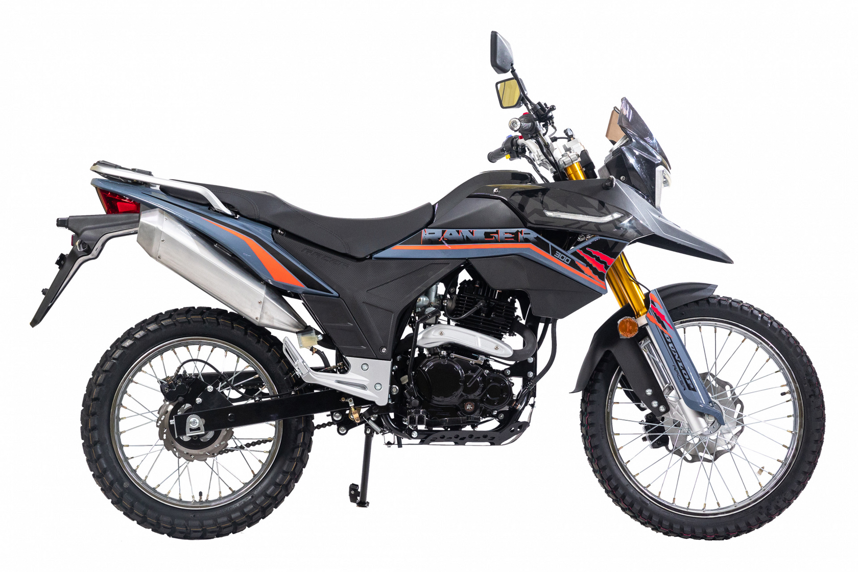 Мотоцикл Racer RC300-GY8A Ranger– ваш надёжный спутник! Купив Racer Ranger Вы получаете прекрасный набор: моноамортизатор и надежный маятник, 5-ти ступенчатая КПП и дисковые тормоза.Только владелец мотоцикла Ranger от Racer сам решает куда поехать и когда остановиться. 12-литровый запас топлива позволяет проехать более 300 км без дозаправки. Современная электронная панель приборов мотоцикла Racer Ranger с оранжевой подсветкой удобна и информативна. Индикация включенной передачи и тахометр позволяют контролировать крутящий момент 270 кубового двигателя.