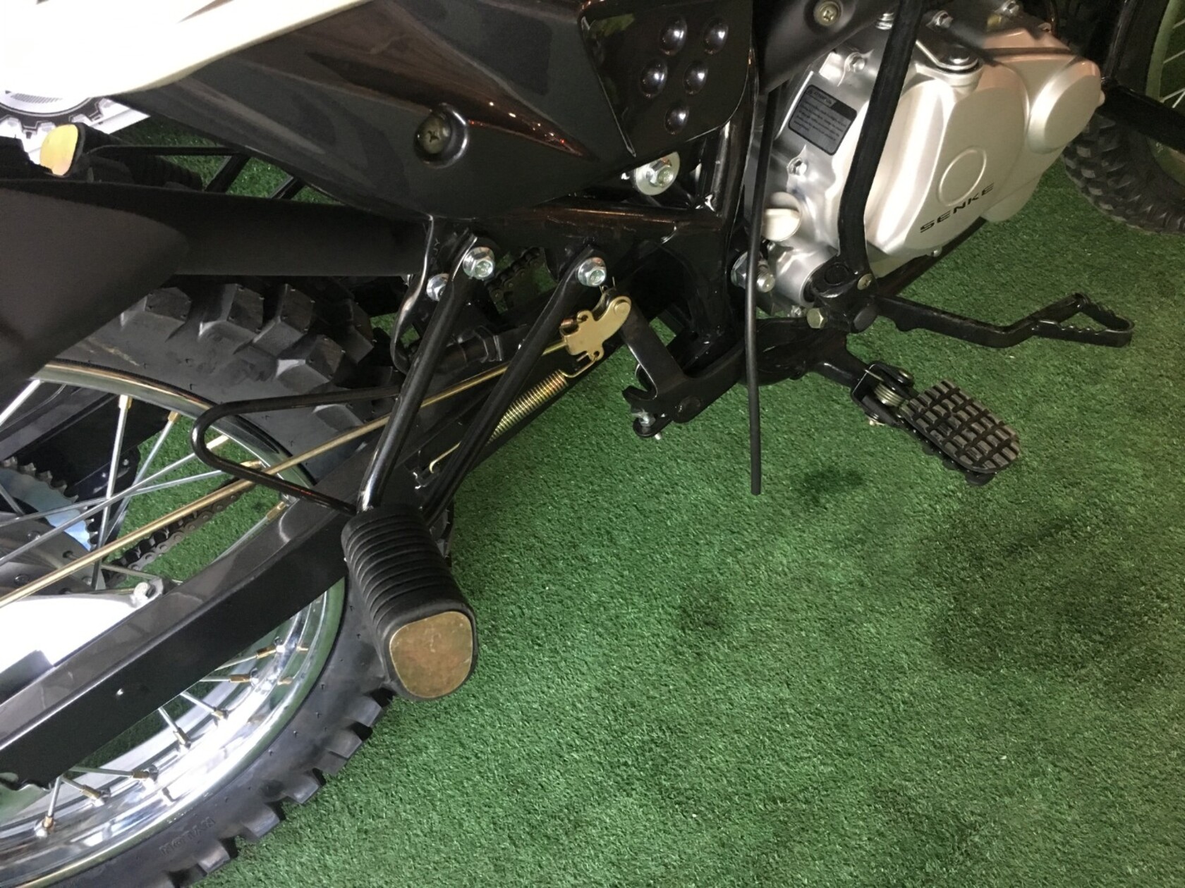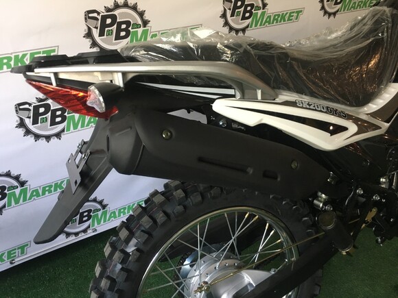 Regulmoto SK 200GY-5 – мотоцикл двойного назначения, созданный для эксплуатации как на дорогах общего пользования, так и на легком бездорожье. Топовая модель линейки лайт-эндуро мототехники известного китайского производителя Senke отличается высокой надежностью повседневной эксплуатации, отсутствием сложностей в сервисном обслуживании, простотой и легкостью управления.В надежной раме с защитными дугами Regulmoto SK 200GY-5 установлен 4-тактный одноцилиндровый двигатель с рабочим объемов в 20 см3, демонстрирующий максимальную мощность в 13.6 л.с. Мотор с воздушным охлаждением, в котором можно без труда признать реплику двигателя известного японского производителя, оснащается балансировочным валом, что позволяет избавиться от излишней вибрации.Подвеска мотоцикла на колесах 21/18 дюймов со стальными ободьями представлена телескопической вилкой-перевертышем спереди, перья которой закрыты защитой, и стальным маятником с моноамортизатором сзади. Тормоза у мотоцикла дисковые, спереди установлен 4-поршневой суппорт, сзади – 2-поршневой.Оснащение Regulmoto SK 200GY-5 соответствует возлагаемым на мотоцикл эксплуатационным задачам: на байке вполне комфортно передвигаться по дорогам и легкому бездорожью, чему способствуют достаточно большой ход амортизаторов, защита цепи, пластиковая защита рук. Среди установленного оборудования присутствуют: аналоговая приборная панель, замок зажигания с защитой от попадания песка и пыли, полный комплект светового оборудования с дополнительными светодиодными поворотниками, встроенными в боковые обтекатели, зеркала заднего вида, стояночная и центральная подножки.Данная модель мотоцикла присутствует на отечественном рынке мототехники уже достаточно длительное время, за которое мотоцикл зарекомендовал себя легким в эксплуатации и неприхотливым в обслуживании аппаратом. О высокой надежности мотоцикла говорят солидный километраж пробегов при отсутствии серьезных неисправностей и позитивные отзывы обладателей Regulmoto SK 200GY-5.У нас Вы можете купить этот мотоцикл с бесплатной доставкой по РФ и гарантией до года. Также его можно приобрести в рассрочку или в кредит.