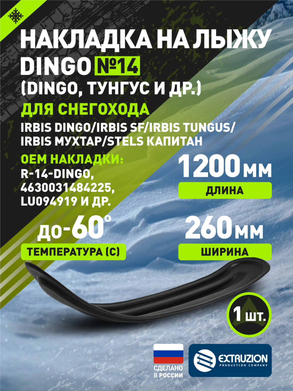 Универсальная накладка на лыжи для снегоходов Dingo, Тунгус и других марок. Разработана для повышения проходимости и защиты стандартных лыж от износа и повреждений. Обеспечивает улучшение ходовых качеств и повышенную плавучесть в глубоком снегу.