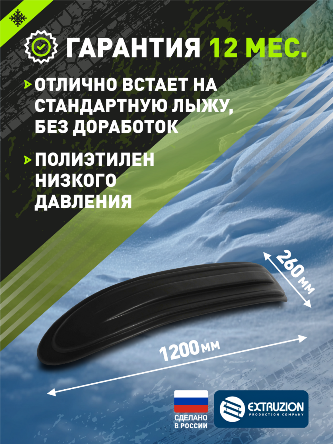 Надежная защита и долговечность. Защищает оригинальные лыжи от сколов, царапин и абразивного износа Изготовлена из морозостойкого ПНД, сохраняющего гибкость при температуре до -60C Принимает на себя основную нагрузку, значительно продлевая срок службы штатных лыж