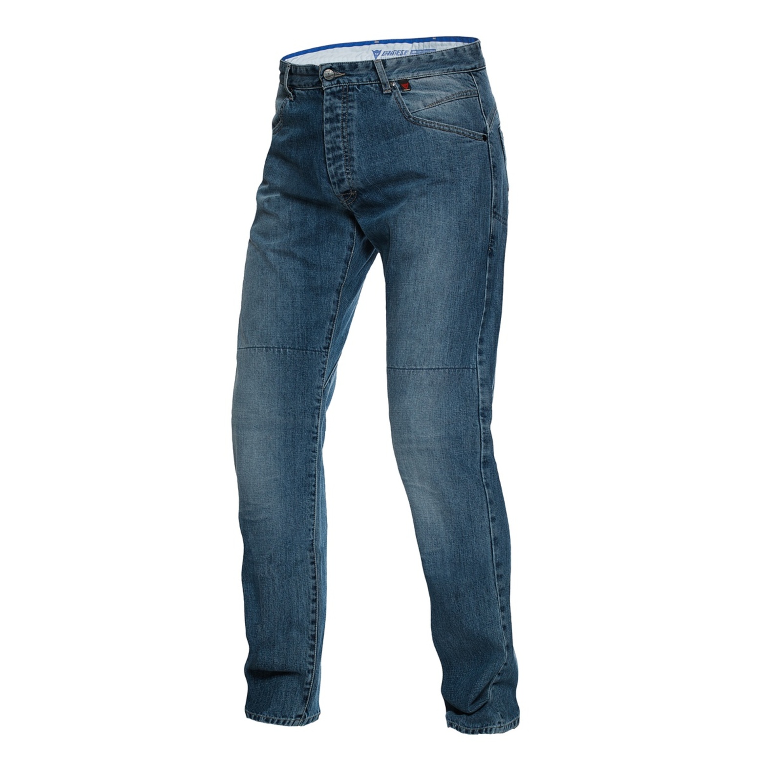Мотоджинсы Dainese Bonneville Regular Medium Denim. Плотная джинсовая ткань с арамидными нитями. Регулируемая защита ProShape на колени: класса soft (мягкая, ударопоглощающая), сертифицированы по стандарту EN 1621.1. Карман для установки защиты на бедра. DuPont Kevlar .