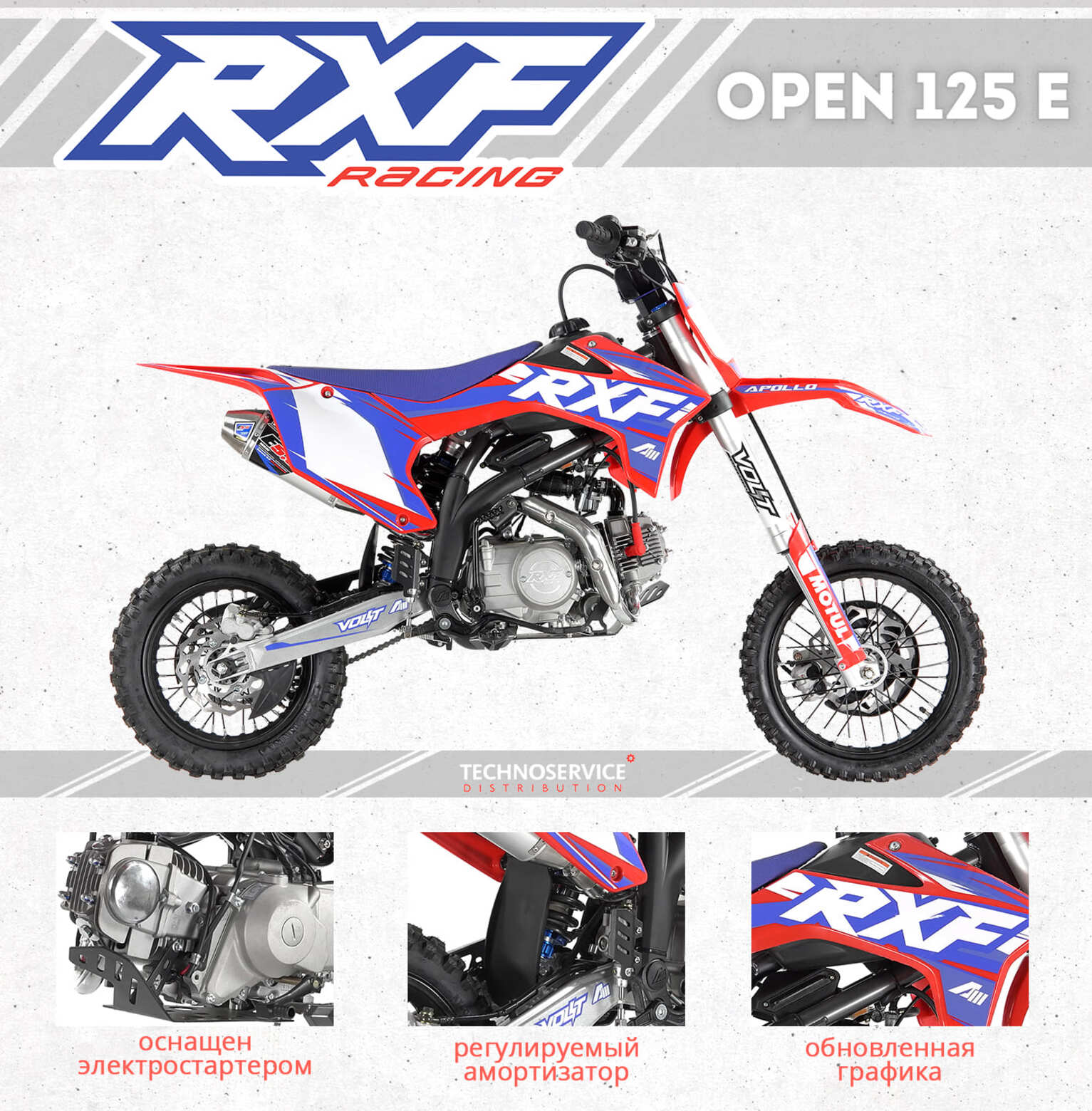 Главная ... Питбайки Apollo Питбайк Apollo RXF Open 125E, 14/12 Синий