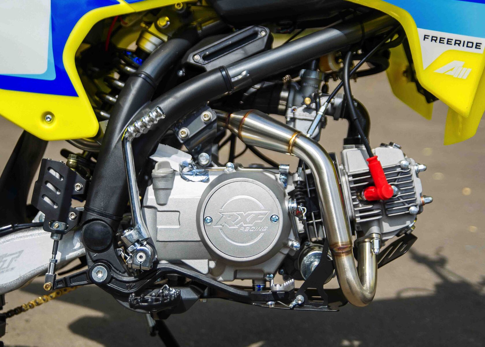 Представляем Вам обновленный RXF Freeride 125 LE 17/14. Модель обзавелась фарой, электростартером и также получила обновленный дизайн графики.RXF Freeride 140 L – по праву считается отличным выбором из линейки Freeride. Мотор YX 125 с электростартером достаточно мощный и тяговитый, чтобы не дать скучать опытным райдерам, но в тоже время достаточно покладистый и безопасный для новичков. На обновленном Freeride теперь есть фара головного света, которая идет в комплекте с питбайком.
