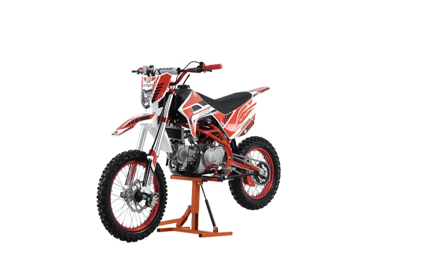 ROCKOT HI-TECH 140 Forsage 2.0 - питбайк со спортивным нравом. Двигатель объемом 140 кубических сантиметров, превосходно проявляет себя как в повседневной езде по лесу, так и в спортивных состязаниях по мини мотокроссу. С управлением питбайком ROCKOT HI-TECH 140 Forsage справятся и взрослые и дети, ведь его вес всего 75 килограмм. Высота по седлу у данной модели - 850 мм, что будет комфортна для райдеров ростом от 150 см.Рулевое управлениеВ алюминиевых траверсах закреплен высокий руль, на котором установлены короткоходная ручка газа, откидные, фрезерованные рычаги сцепления и тормоза, счетчик моточасов и кнопки: старт, стоп. Тормозная системаПитбайк оснащен полностью гидравлической тормозной системой. Спереди установлен двухпоршневой тормозной суппорт, сзади - однопоршневой. Гидравлическая машинка заднего тормоза оборудована металлической защитой, которая обеспечит ее сохранность при боковых ударах. Тормозные диски увеличенного диаметра: передний тормозной диск - 220 мм, задний - 190 мм. Перфорация тормозных дисков обеспечивает их постоянное охлаждение во время езды. Данная тормозная система способна быстро останавливать питбайк в любых условиях, даже с высокой скорости.