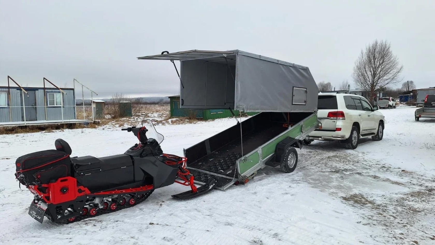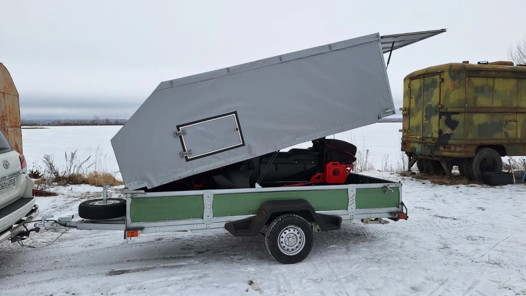 Прицеп VOYAGE Classic 4,0 Бортовой, с тентованным подъемным каркасом, окнами и задней дверью (ш. 1,8; д. 4,0)