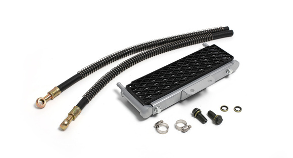 • Широкий алюминиевый радиатор в сборе с шлангами — оптимальное решение для охлаждения высокооборотистых двигателей питбайков объёмом от 140 см³. Подходит для моделей YX140, YX140E, YX150E, YX150-5, YX150/160, ZS155/160/190E и большинства современных питбайков. Радиатор оборудован пластиковыми решётками с обеих сторон для защиты от камней и веток. Крепление осуществляется пластиной с двумя отверстиями, расстояние между центрами — 45 мм. Для подключения шлангов необходимы банжо-болты 10×1,25.