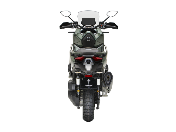 Скутер ZONTES ZT368-G – максискутер двойного назначения, готовый пронестись по улицам города за его пределы и отправиться по грунтовым тропам прокладывать свой маршрут туда, куда вам потребуется. Регулируемая подвеска с перевёрнутой телескопической вилкой спереди обеспечит отличную управляемость и устойчивость в любых условиях.Силовая установка представлена одноцилиндровым 4-тактным двигателем. Двигатель имеет объём 368 см³ и обеспечивает мощность в 38,8 л.с. Оснащён инжектором BOSCH, системой жидкостного охлаждения и вариатором. Запуск двигателя осуществляется с помощью бесключевого доступа.Ёмкость топливного бака 17,5 литра.Колёса имеют диаметр 17 дюймов спереди и 14 дюймов сзади. Для подвески спереди используется телескопическая вилка перевёрнутого типа, а сзади установлены 2 гидравлических амортизатора. Гидравлические дисковые тормоза произведены компанией J.JUAN, входящей в холдинг BREMBO. Мотоцикл также оснащён 2-канальной ABS-системой, противобуксовочной системой TCS System и датчиками давления в шинах.ZT350-G оборудован яркой LED-фарой, мультимедийной приборной панелью с TFT-дисплеем, имеются 2 USB-порта.Габариты скутера 2230х925х1290 мм. Колёсная база 1560 мм. Высота по седлу 795 мм. Вес 198 кг.