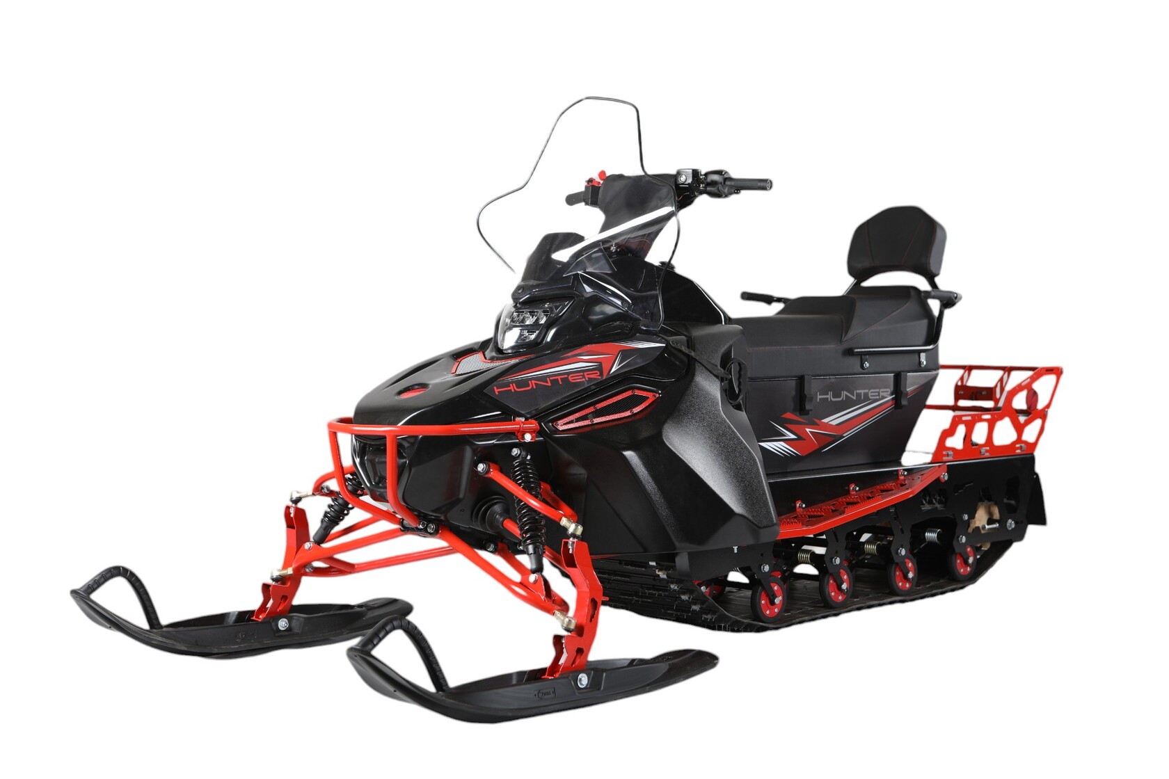 Компания IKUDZO представляет серию снегоходов IKUDZO HUNTER. Снегоходы IKUDZO HUNTER, это современный снегоход на пятисотой гусенице с четырехтактными двигателем.Компания IKUDZO использует только самые качественные двигателя YAMAHA, HONDA, ZONGSHEN, LONCIN и LIFAN.Снегоход созданный при участии ВНИИ ТЕСТ и имеет современную пространственную раму и уникальную подвеску IKUDZO.Новая технология создания цельно-металлической пространственной рамы, на базе коррозионностойкой стали. Рама имеет минимум сварных швов, что значительно увеличило срок службы и защиту от коррозии.Снегоход IKUDZO имеет современную многорычажную подвеску с регулируемыми амортизаторами.Облегченные пластиковые лыжи из морозостойкого пластика.Капот из высококачественного, морозостойкого пластика, состоит из нескольких составных частей, что позволяет без проблем, получить доступ к любым узлам снегохода для обслуживания. А также, в случае повреждений вам достаточно заменить отдельный элемент, что значительно снижает стоимость обслуживания. Мощная, светодиодная фара имеет плотный световой поток и работает в двух положениях ближний и дальний свет.Ветровое стекло, не только защитит Вас от потока ветра но и сохранит свою целость даже в экстренных ситуациях, благодаря своей гибкости.Руль снегохода ИКУДЗО, имеет приятные, эргономичные ручки с подогревом, а также современные блоки управления.Современная панель приборов, имеет множество функций, включая показания уровня топлива, скорости, пробега, температуры двигателя и множество других функций.Подножки снегохода сделаны так, чтобы не набивался снег и ваши ноки уверенно держались благодаря специально созданным выступам.Отдельная гордость компании IKUDZO это уникальная подвеска. Запатентованное строение катков с японскими подшипниками значительно увеличивает срок эксплуатации без необходимости частого обслуживания. Благодаря открытому пространству, подвеска IKUDZO не забивается снегоход и не боится наледи.• Двигатель: 20 л.с. 4х тактный (c Японским карбюратором) ZONGSHEN/LONCIN/LIFAN
