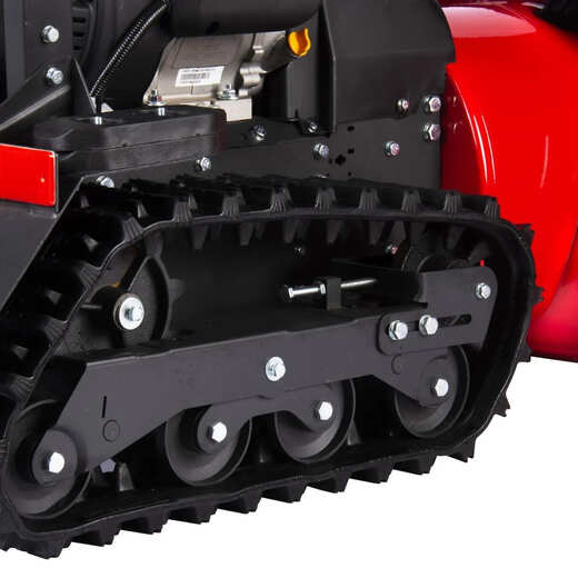 - Гусеничный ход. Использование гусениц прямоугольной формы с системой «антиналедь» и самоочисткой увеличивает пятно контакта и обеспечивает непревзойденную проходимость на любых поверхностях: скользких, заснеженных, даже по глубокому рыхлому снегу. Это идеальное решение для работы на неровных рельефах и склонах.