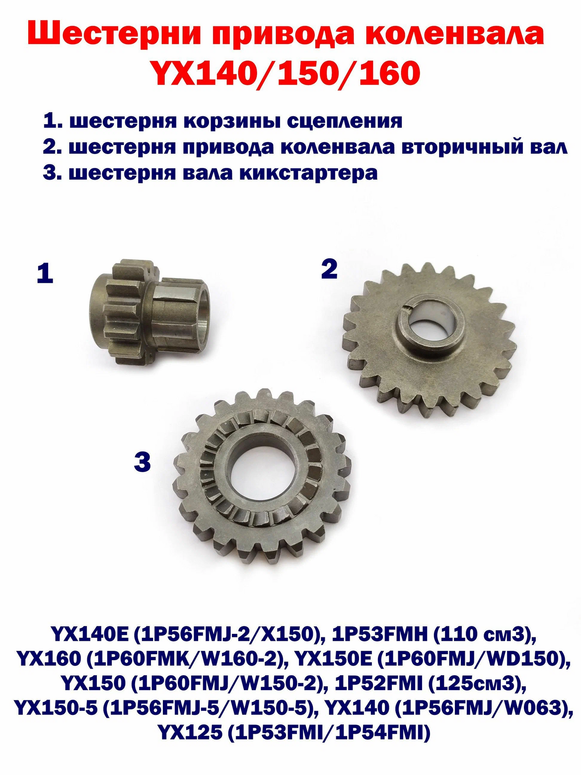 Главная ... Сцепление Шестерни привода коленвала и кикстартера комплект YX140/ YX150(150-5/ 150-2) /YX160