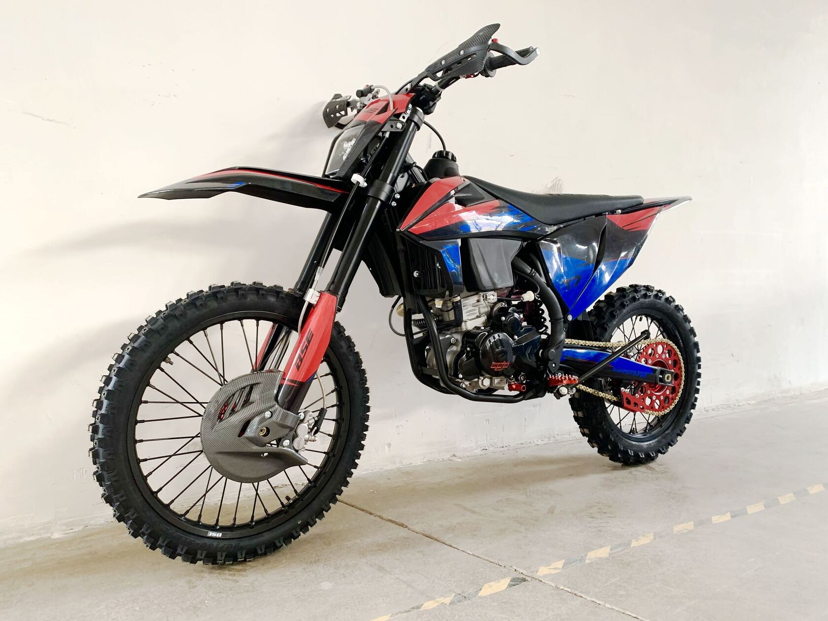 1BSE RUSSIA рада представить модель Т7 в новой комплектации SPORT.T7 Sport укомплектован профессиональной подвеской Mojo Racing (от компании ZL Sport). Передняя двухкамерная вилка с закрытым картриджем имеет полный диапазон регулировок, диаметр перьев - 48 мм, длина вилки – 930 мм, ход - 280 мм. Сзади установлен полностью настраиваемый моноамортизатор BSE Mojo Racing длиной 480 мм и ходом 120 мм. Подвеска с большими ходами помогает отрабатывать даже самые жесткие приземления, с лёгкостью "глотая" все неровности. Подвеску легко настроить под любой рельеф, любую трассу и стиль езды. Вы ощутите результат, когда будете сокращать секунды круг за кругом! Разработка подвески Mojo Racing производилась опытными инженерами-подвесочниками завода, а настройка — под чутким контролем заводской спортивной китайской командой BOSUER. Особое внимание было направлено на снижение веса всей подвески. Установлены новые усиленные CNC траверсы вилки.Также комплектация Sport включает в себя обновленную переднюю тормозную гидравлическую систему с диском диаметром 240 мм и новым фрезерованным передним суппортом Mojo Racing, для более мощного и прогнозируемого торможения. Также усиленное сцепление, фрезерованные траверсы вилки, фрезерованные подножки с увеличенным зацепом и более легкую фрезерованную заднюю звезду.Двигатель T7 – мощный, технологичный и тяговитый 4-х тактный Zonsen ZS174MN-5A (NB300). Рабочий объём 300сс, 4-клапанная ГБЦ, водяное охлаждение. Минимальные вибрации благодаря наличию балансирного вала. Система питания – проверенный карбюратор Nibbi Racing PWK34. Все это позволило снять внушительные 30 л.с. при 8500 об. в мин. и 22 Нм при 7500 об. в мин. Коробка передач – механическая 6 ступенчатая, запуск – только электростартером. Мотор очень эластичный, с отличными показателями крутящего момента на низах и верхах. А легендарная надежность завода моторов ZONSEN, удобство в обслуживании и доступность запчастей в представлении не нуждается!Ещё одна особенность модели Т7 – стальная рама, которая полностью соответствует всем стандартам самого известного австрийского бренда мотоциклов для кросса и эндуро – KTM. Единая геометрия, эргономика, пропорции и углы вылета вилки. Высококачественная сталь, малый вес и большой запас прочности, идеальная развесовка. Мотоцикл оснащен легким алюминиевым подрамником, системой прогрессии и пластиковой защитой мотора. Установлен новый тип пластика, прочный, легкий и современный.На T7 установлен топливный бак на 8 л, мощная тормозная гидравлическая система с дисками диаметром 240 мм, звезды 13t – 49t, «зубастые» покрышки CHAOYANG MX880 ST. Мотоцикл оснащается полностью светодиодной фарой головного света, грипсами и ручкой газа Nibbi Racing, металлической защита рук, CNC подножками с увеличенным зацепом, цепкой шкуркой сиденья и защитой тормозных дисков под карбон.Легкий, прекрасно сбалансированный, мощный мотор. Отточенная управляемость. Подходит для новичков, а также спортсменов в дисциплинах эндуро, хард-эндуро, супер-эндуро, мотокросс.