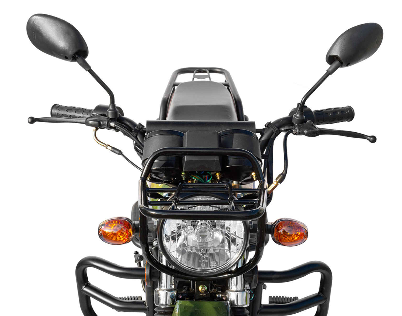 Regulmoto Alpha (RM-3) полностью готов к любым дорожным приключениям: мопед укомплектован светотехническим оборудованием, включающим переднюю фару с LED-лампой, задний стоп-сигнал, указатели поворотов. Также на руле мопеда установлены зеркала заднего вида и приборная панель, на которую выводятся показания спидометра, одометра, обороты двигателя, номер включенной передачи, индикаторы работы поворотников и фары.