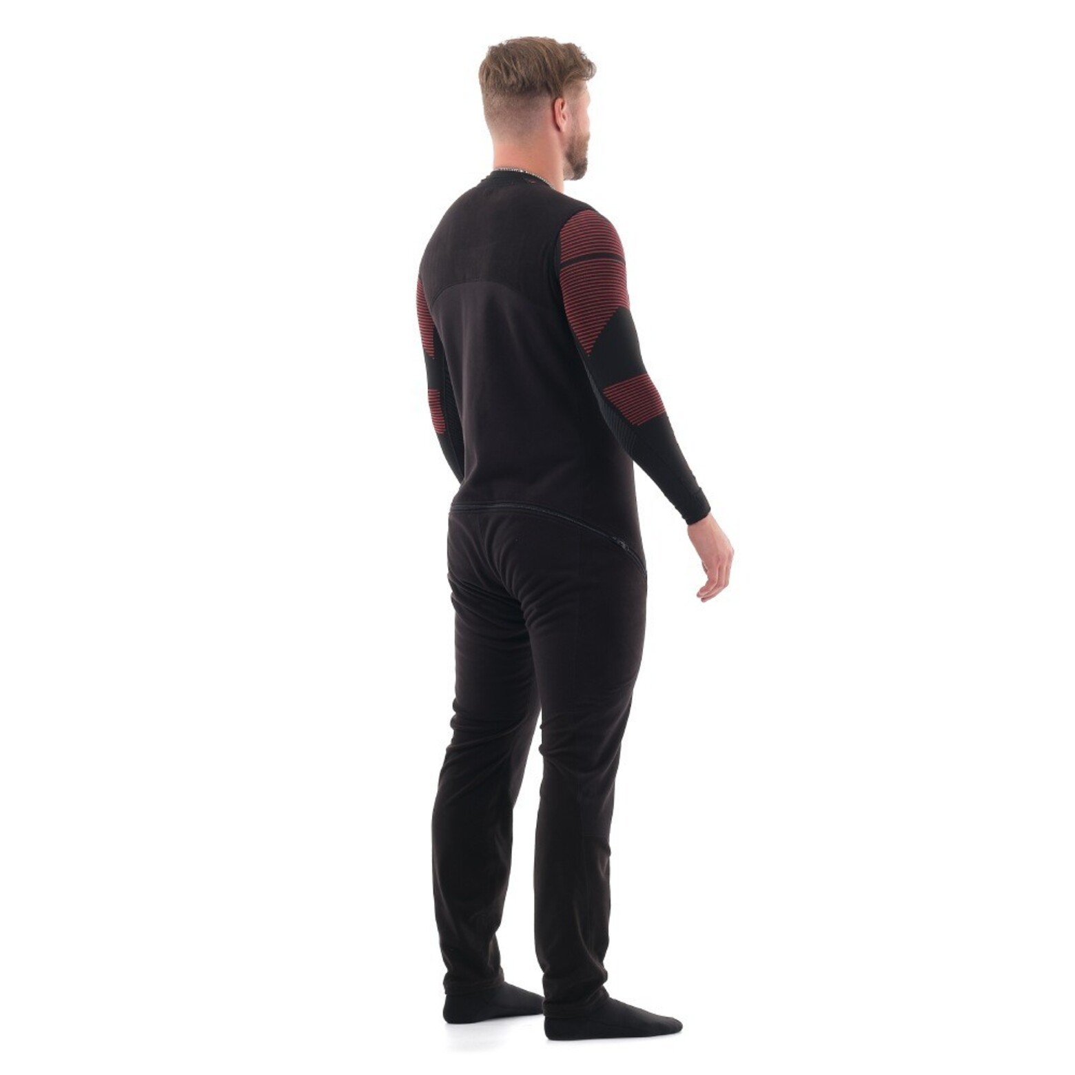 Полукомбинезон утеплённый унисекс (черный)Черный полукомбинезон из флиса и виндстоппера – разновидность термобелья, обеспечивает повышенную теплоизоляцию в области груди, спины, коленей и паха. Используется как "второй слой": надевается на тонкое термо под штаны или комбинезон. Эта простая вещь сделает спорт и активный отдых зимой значительно более комфортным: легкий и теплый полукомбинезон по достоинству оценят те, кто передвигается на технике (снегоход, сноубайк, квадроцикл), катается на сноуборде, занимается зимней охотой или рыбалкой. В качестве утепляющего слоя пригодится в любой холодный период года: весной и осенью можно носить полукомбинезон под вейдерсами и непромокаемым мембранным костюмом.Сшит из двух тканей: дышащий виндстоппер (плотность 350 г/м²) и эластичный флис (плотность 185 г/м²). Состав тканей: 100% полиэстер. Материалы обладают прекрасными теплоизоляционными свойствами, надежно защищая от холода. Не вызывают раздражения и аллергических реакций, что особенно важно для людей с чувствительной кожей.Функциональные характеристики:Комбинация 2 тканей, гармонично дополняющих друг другаПомогает не замерзнуть в суровых погодных условиях, в том числе на ветреных участкахОтводит влагу к верхнему слою: тело остается сухим при интенсивных физических нагрузкахСкроен анатомически, хорошо садится по фигуре, не сковывает движенийБлагодаря мягкости и хорошей растяжимости не давит, не натирает кожуДлинная центральная двухзамковая молния открывается сверху и снизу, что удобно при надевании и облегчает мужской туалетДвухзамковая молния в нижней части спины («бомболюк») незаменима в особых случаях при длительном нахождении в экипировкеБыстро сохнет, не линяет, устойчив к износу, долго не теряет свой первоначальный видМодель унисекс, подойдет как мужчинам, так и женщинам.Температурный режим: от 0 до -30 С.Сделано в России